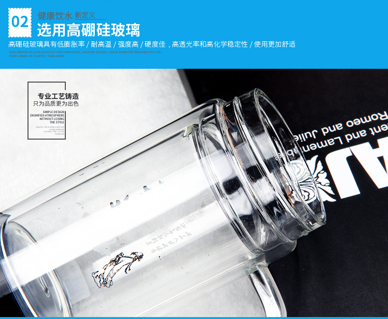 廣東蕾洛商用廚房設(shè)備定制高檔雙層水晶玻璃杯商務(wù)帶手柄水杯
