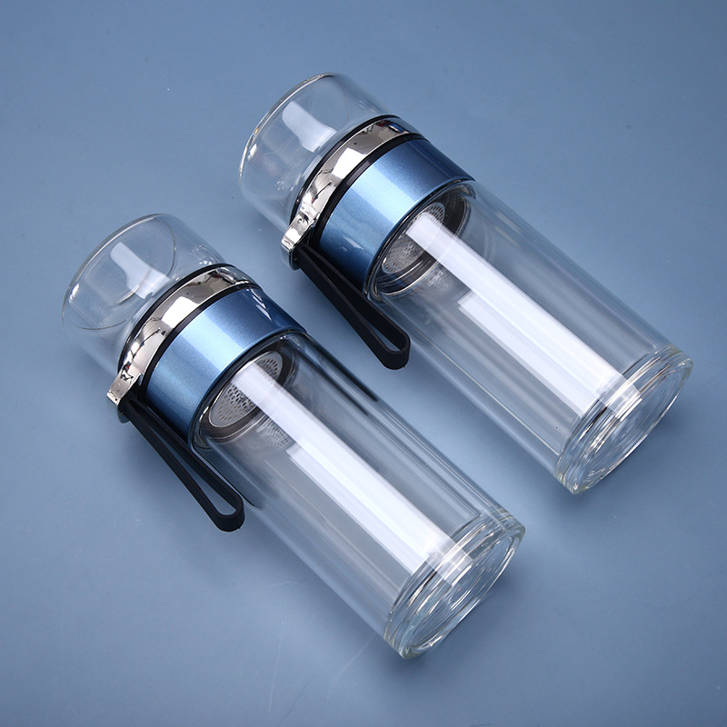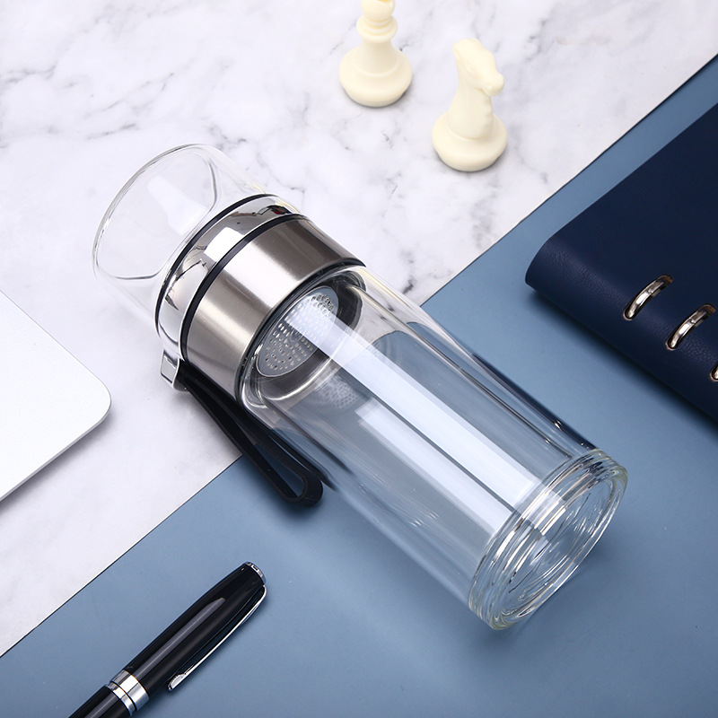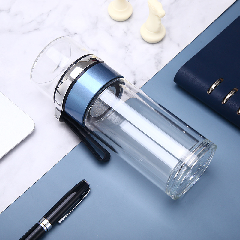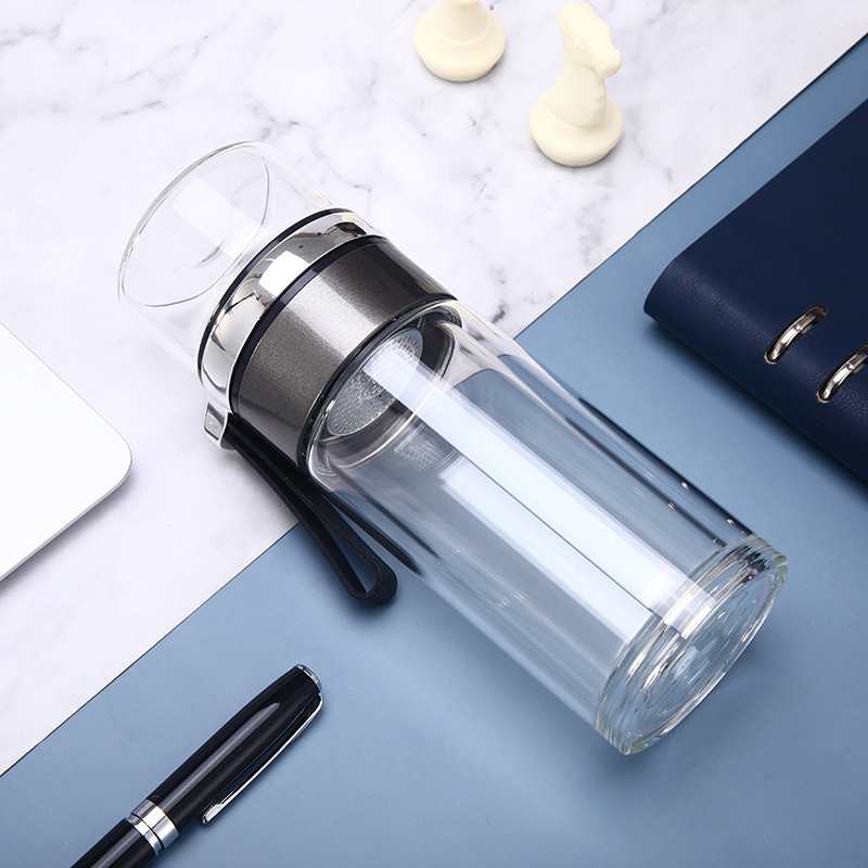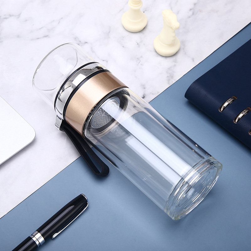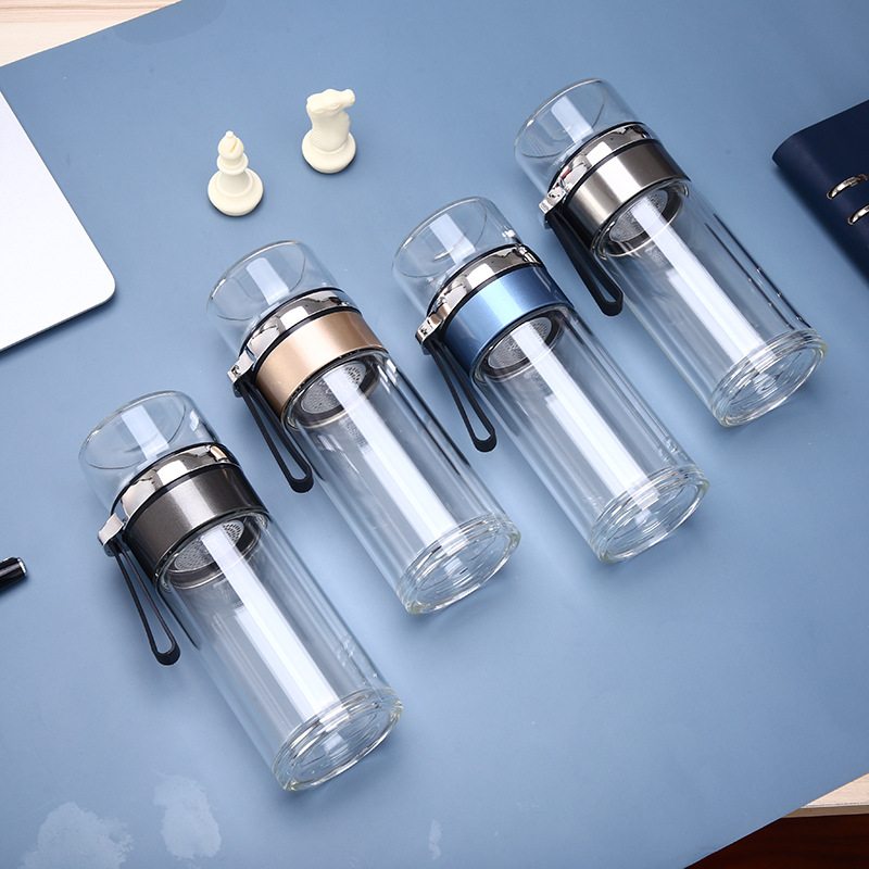 夏季便攜雙層玻璃杯泡茶水分離杯子辦公商務(wù)廣告禮品批發(fā)定制LOGO