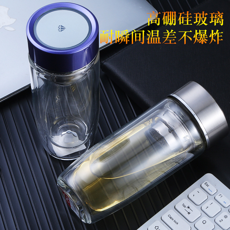 雙層玻璃杯子鵝蛋杯茶杯批發(fā)辦公杯會議室泡茶杯廣告禮品玻璃水杯