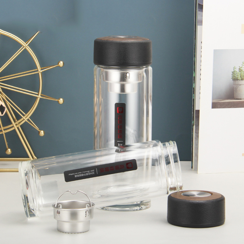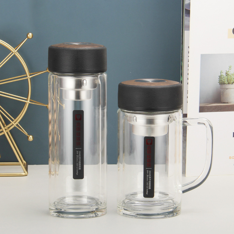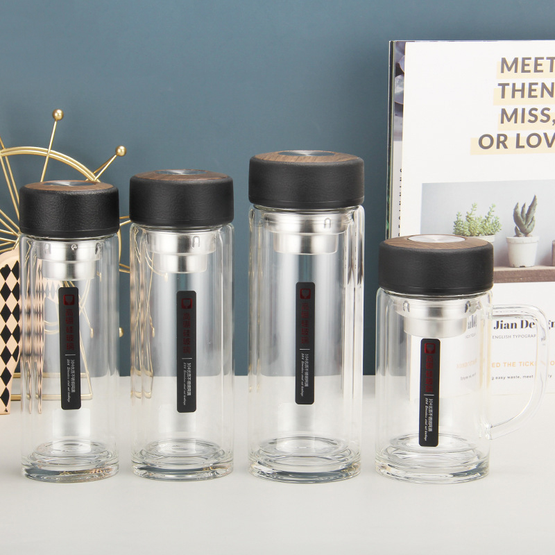 2137雙層玻璃杯高硼硅商務(wù)辦公杯加厚度禮品杯防燙水杯定制