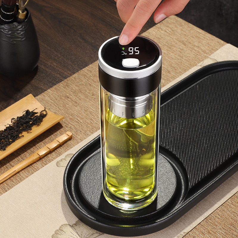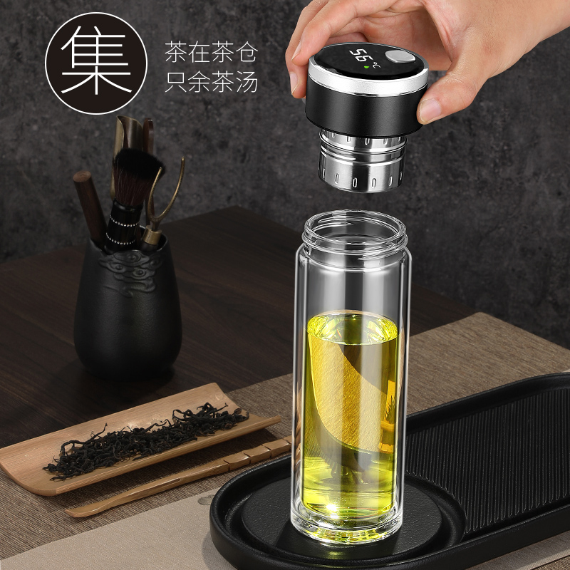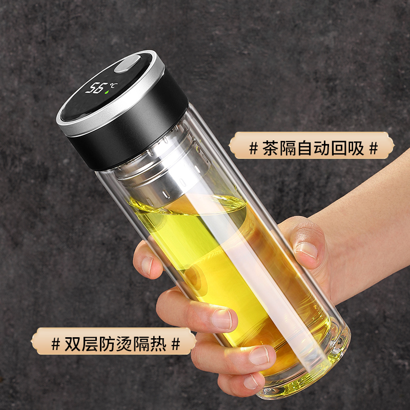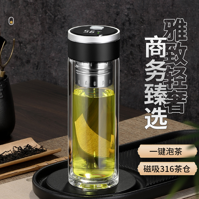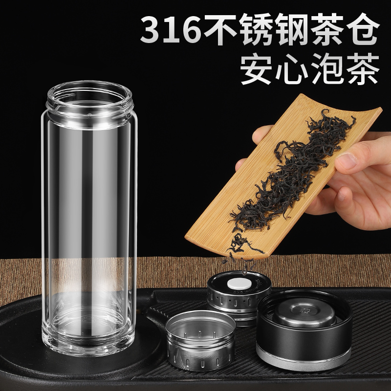 雙層茶水分離玻璃杯磁吸玻璃杯