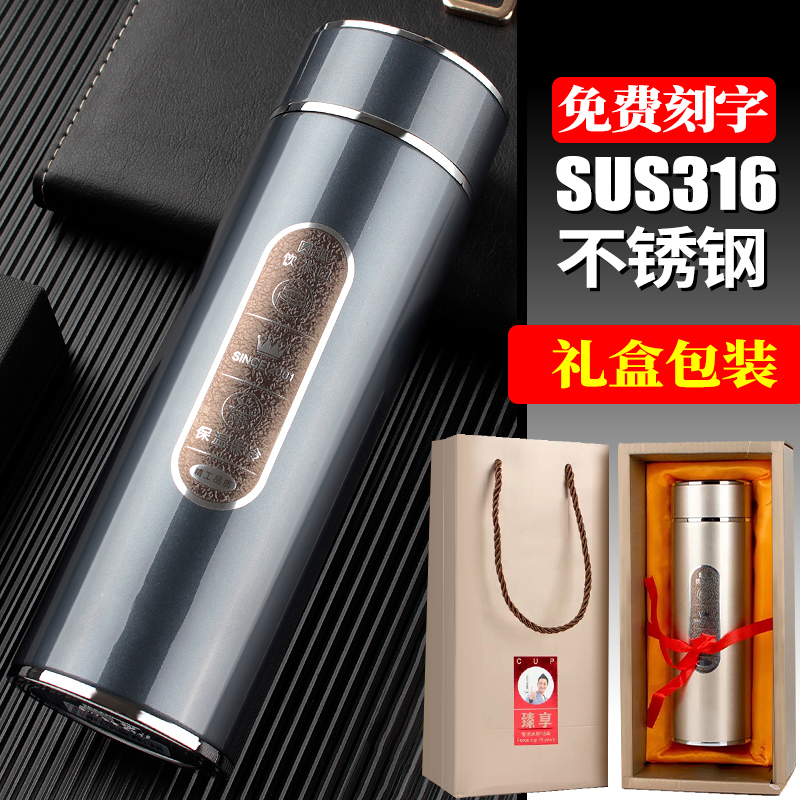 保溫杯男女商務(wù)真空不銹鋼直身杯辦公泡茶杯禮盒裝水杯子316