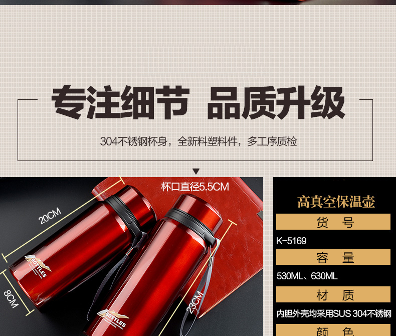 真空保溫杯創意禮高檔不銹鋼子彈頭戶外隨行吊帶定制水壺杯子