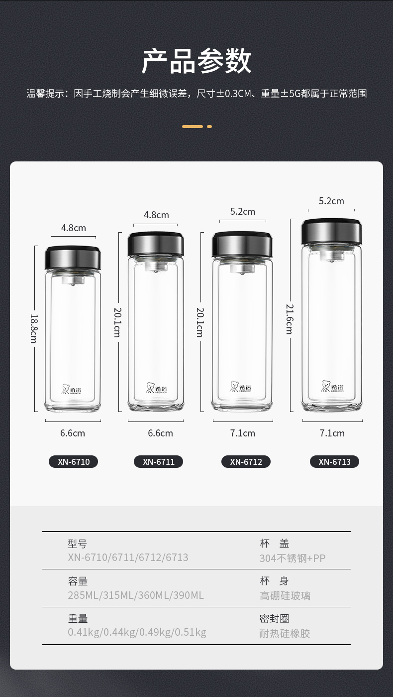 希諾雙層玻璃杯茶水分離水杯男家用透明過濾泡茶杯子高檔送禮商務