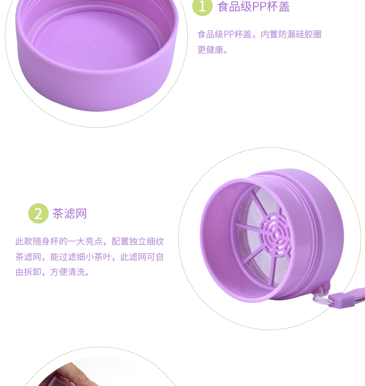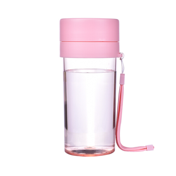 塑料杯子防漏 學生水杯帶茶隔 運動水杯trian材質 隨身杯帶提繩360ml